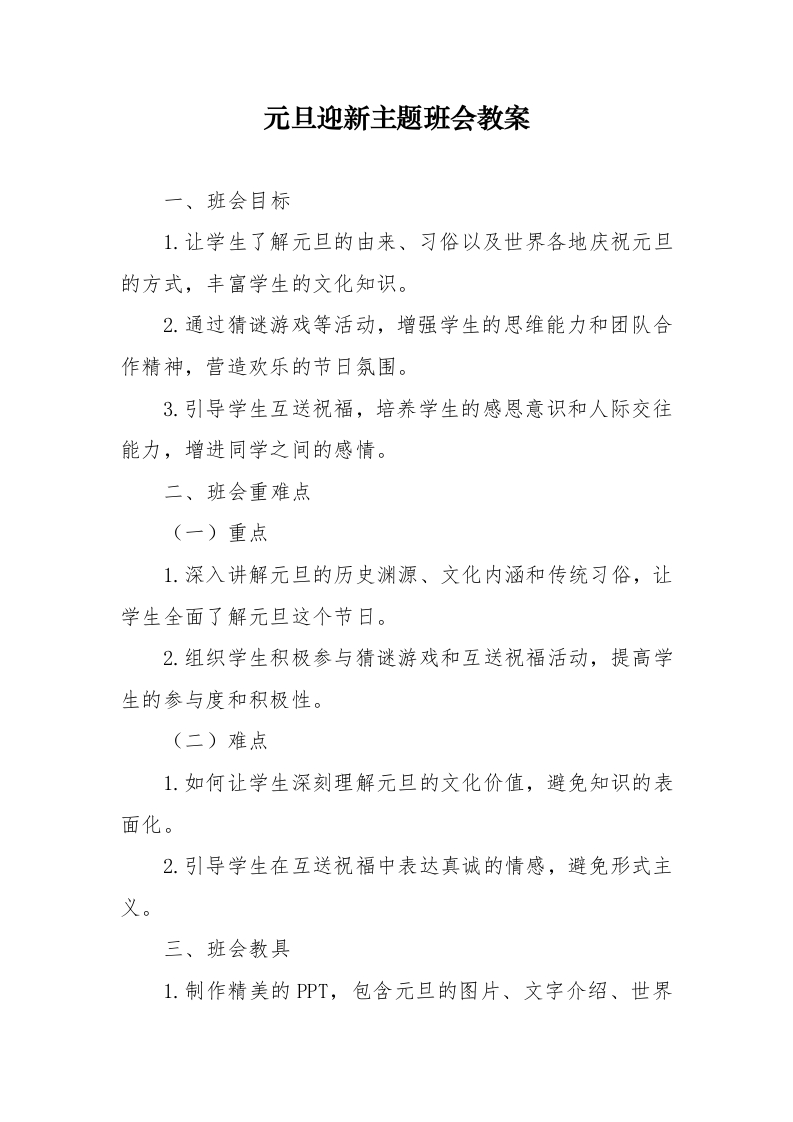 2025年元旦《欢乐元旦》班会教案