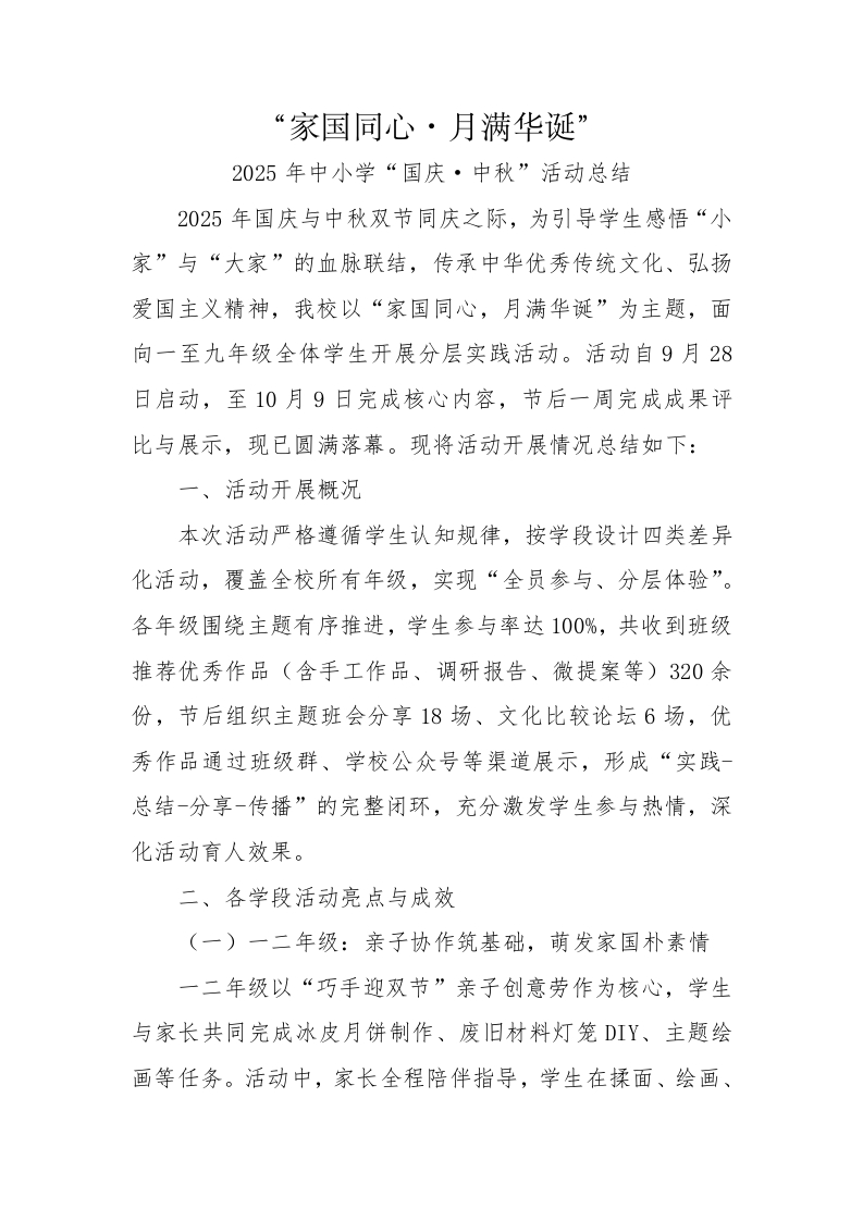 2025年中小学“国庆·中秋”双节活动总结:家国同心,月满华诞