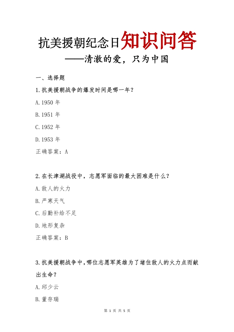 抗美援朝纪念日知识问答
