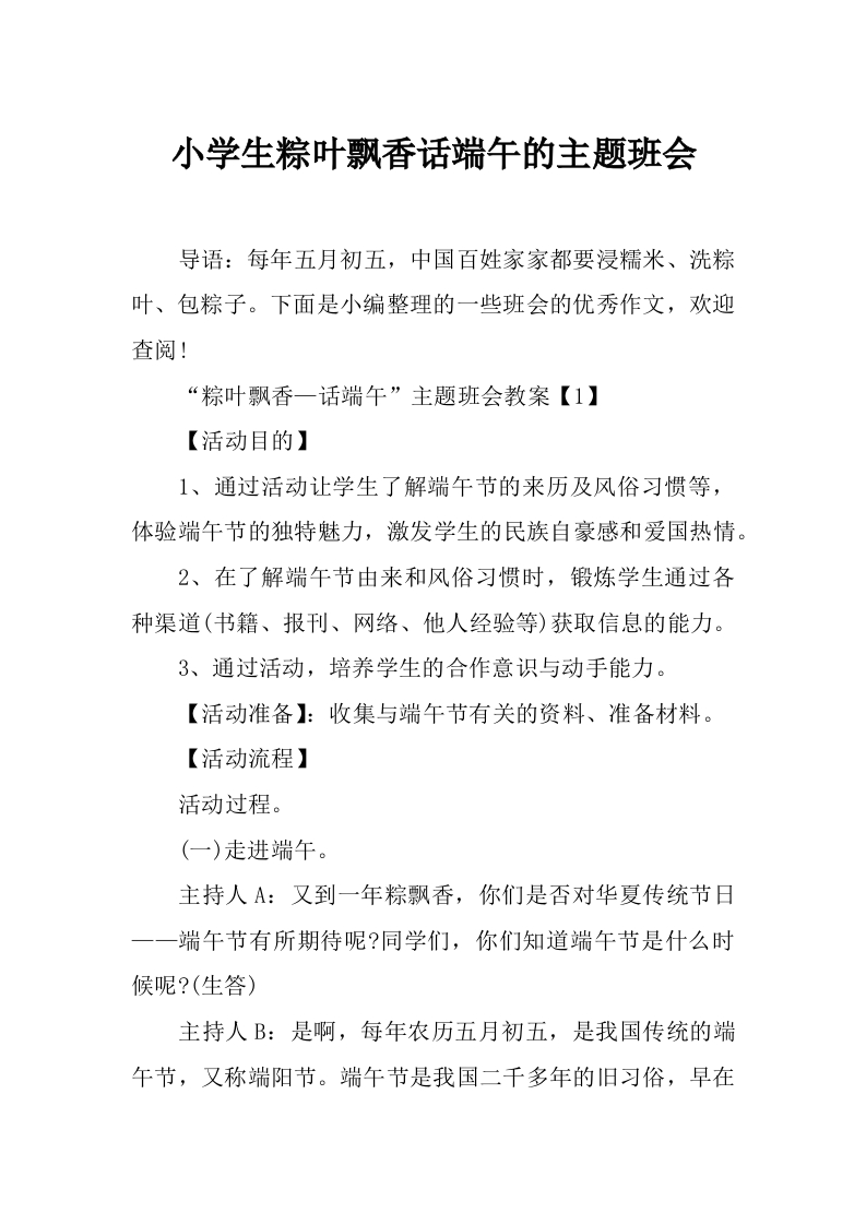 首页热门资源重要节日小学生粽叶飘香话端午的主题班会