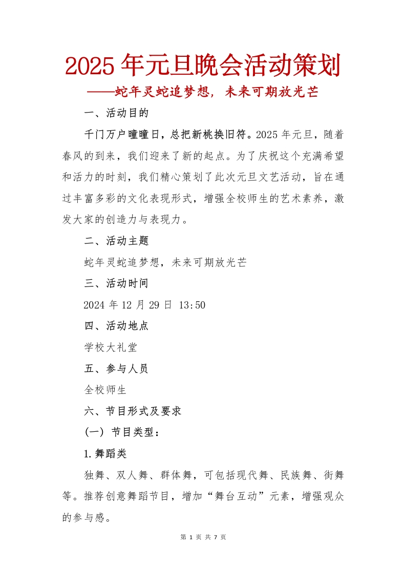 元旦活动方案