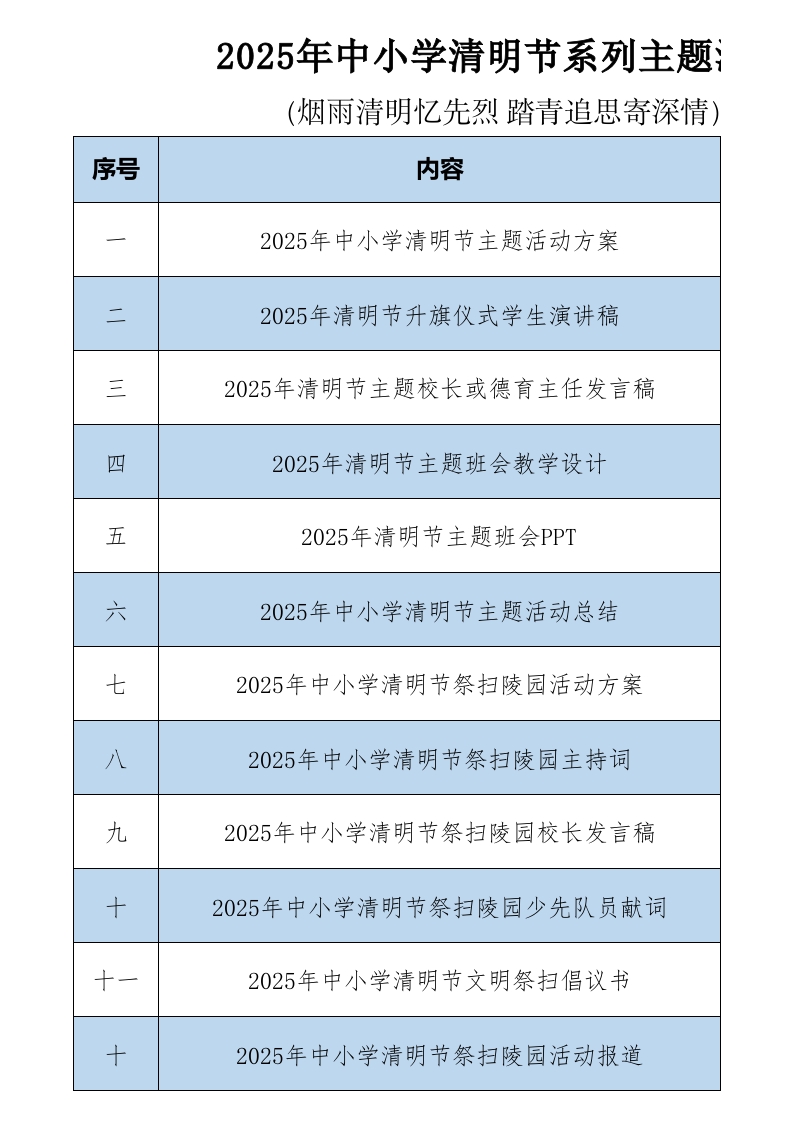 首页热门资源重要节日2025年中小学清明节活动材料目录