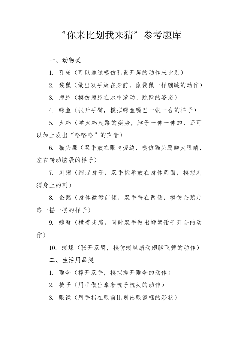 欢乐元旦你来比划我来猜参考题库