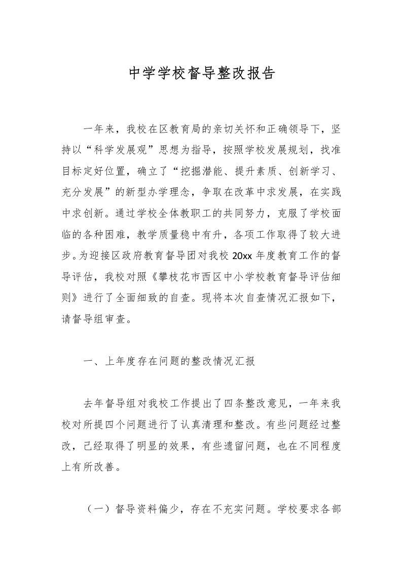 首页教师资料 经验汇报中学学校督导整改报告