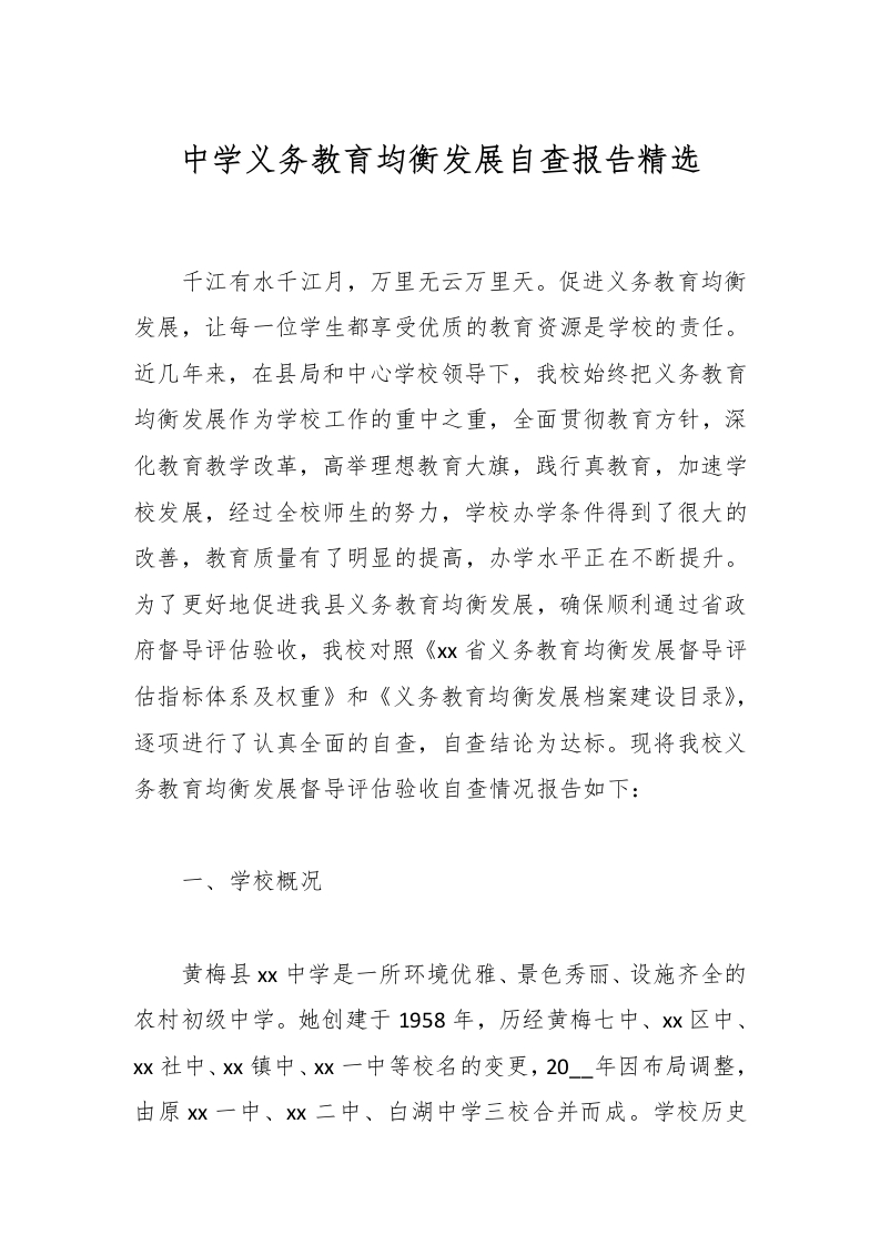 首页教师资料 经验汇报中学义务教育均衡发展自查报告精选