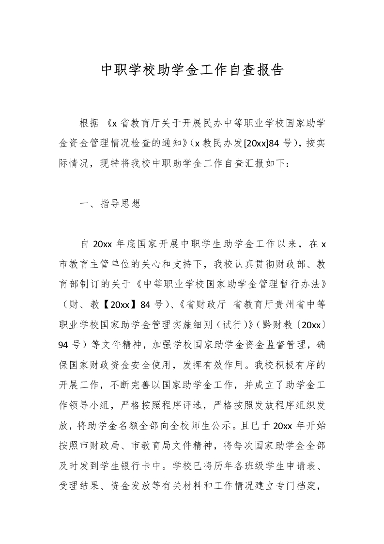 首页教师资料 经验汇报中职学校助学金工作自查报告