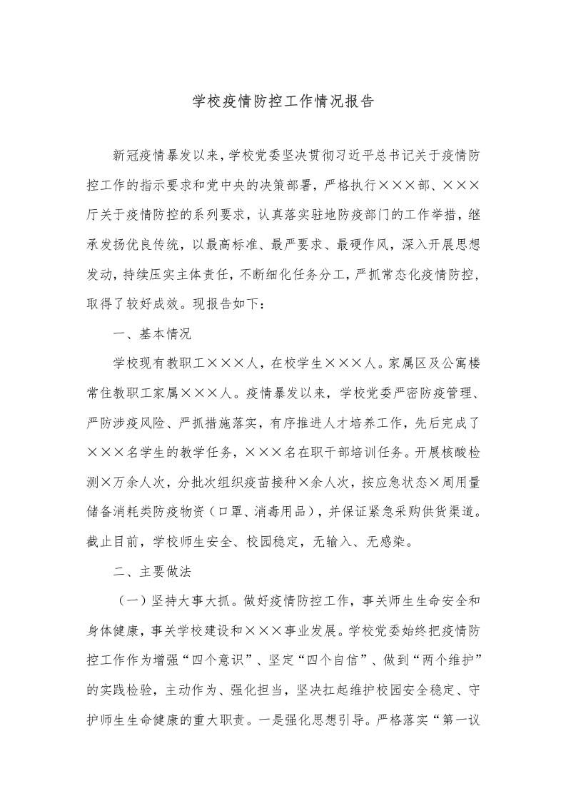 首页教师资料 经验汇报学校疫情防控工作情况报告