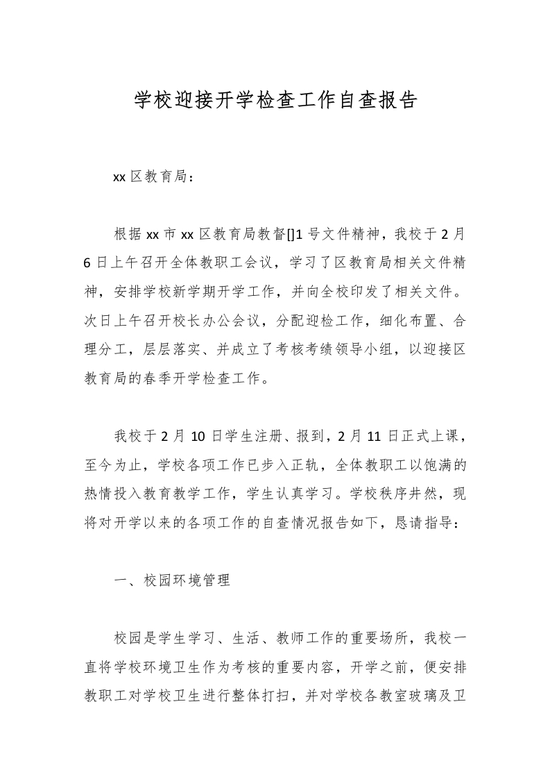 首页教师资料 经验汇报学校迎接开学检查工作自查报告
