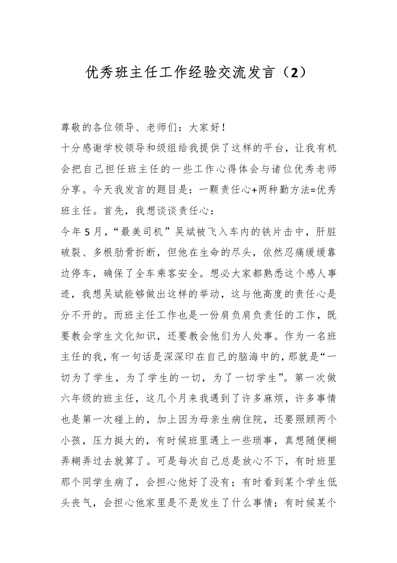首页教师资料 经验汇报优秀班主任工作经验交流发言(2)