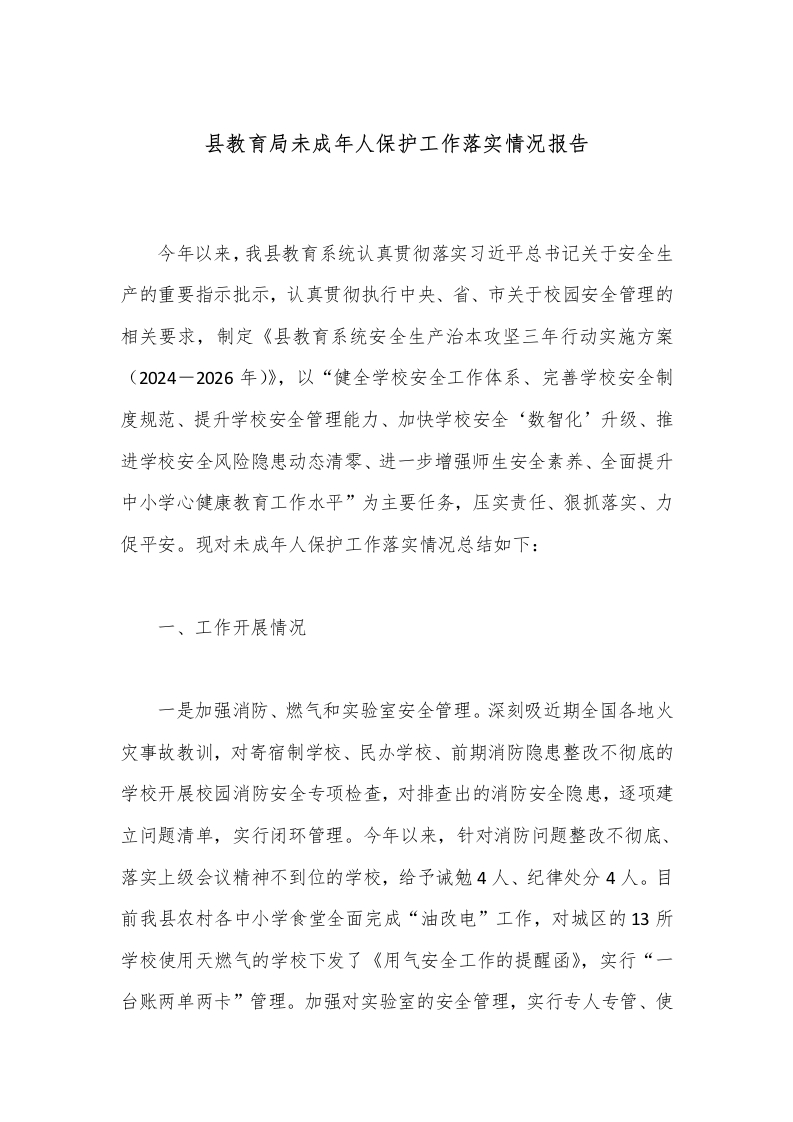 首页教师资料 经验汇报县教育局未成年人保护工作落实情况报告