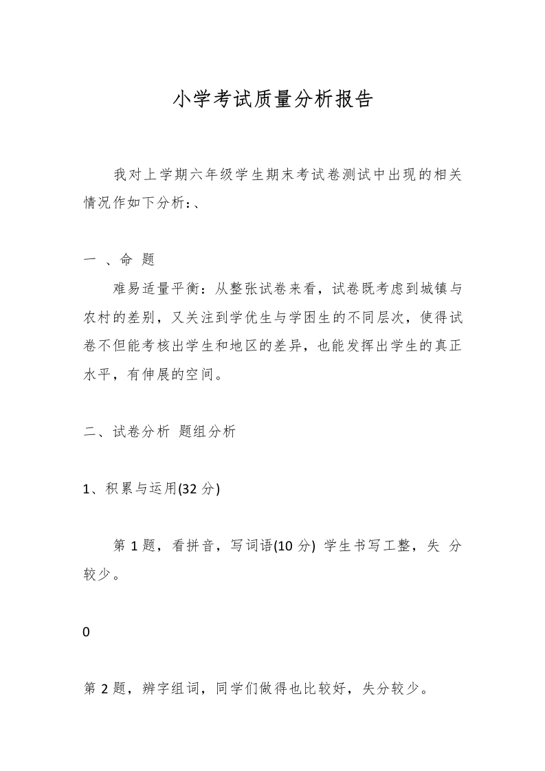 小学考试质量分析报告