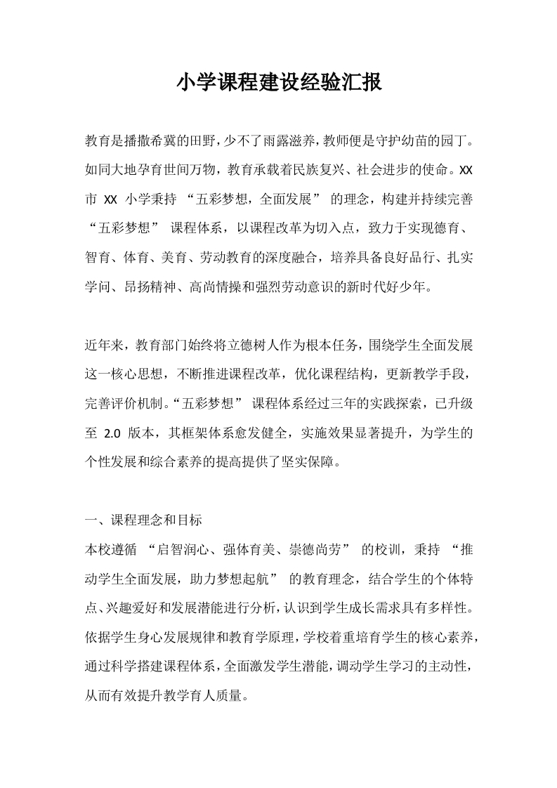 小学课程建设经验汇报