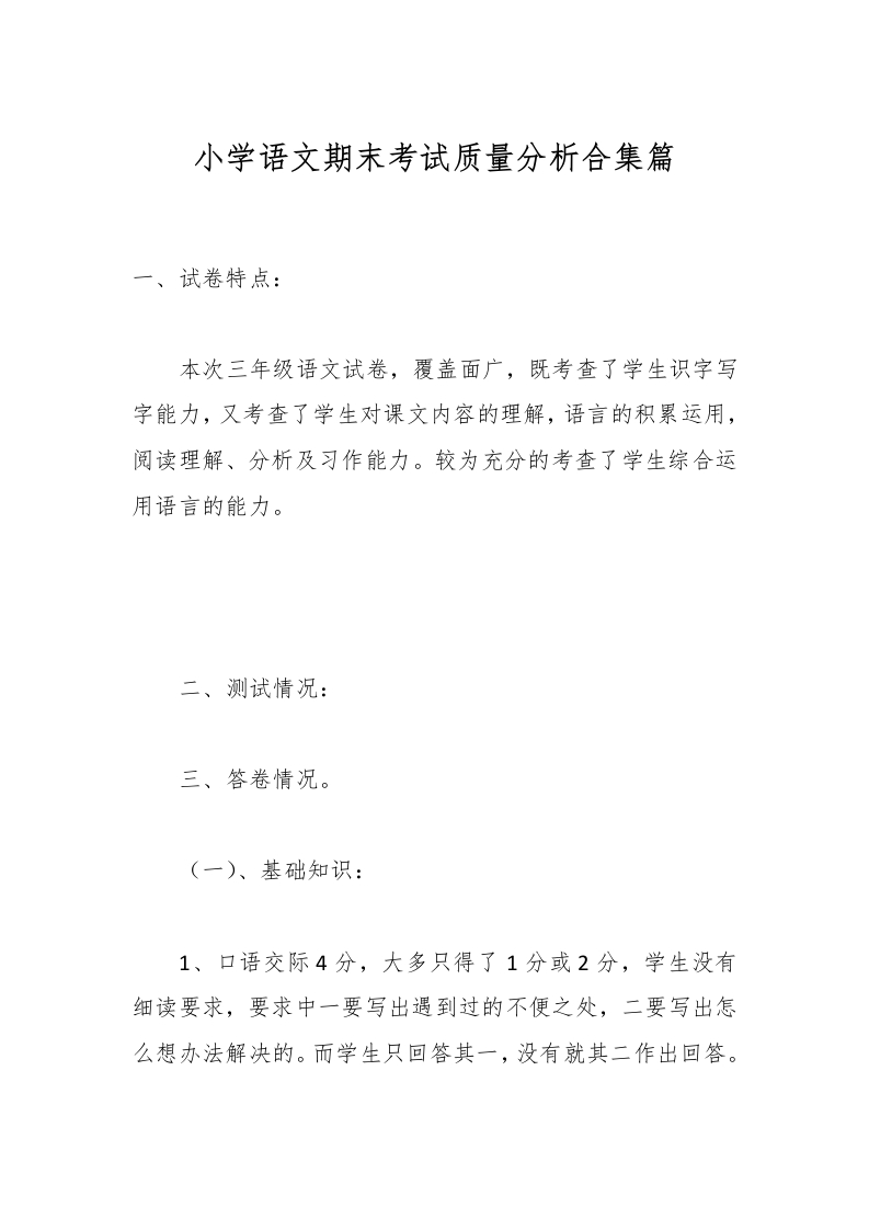 首页教师资料 经验汇报小学语文期末考试质量分析合集篇