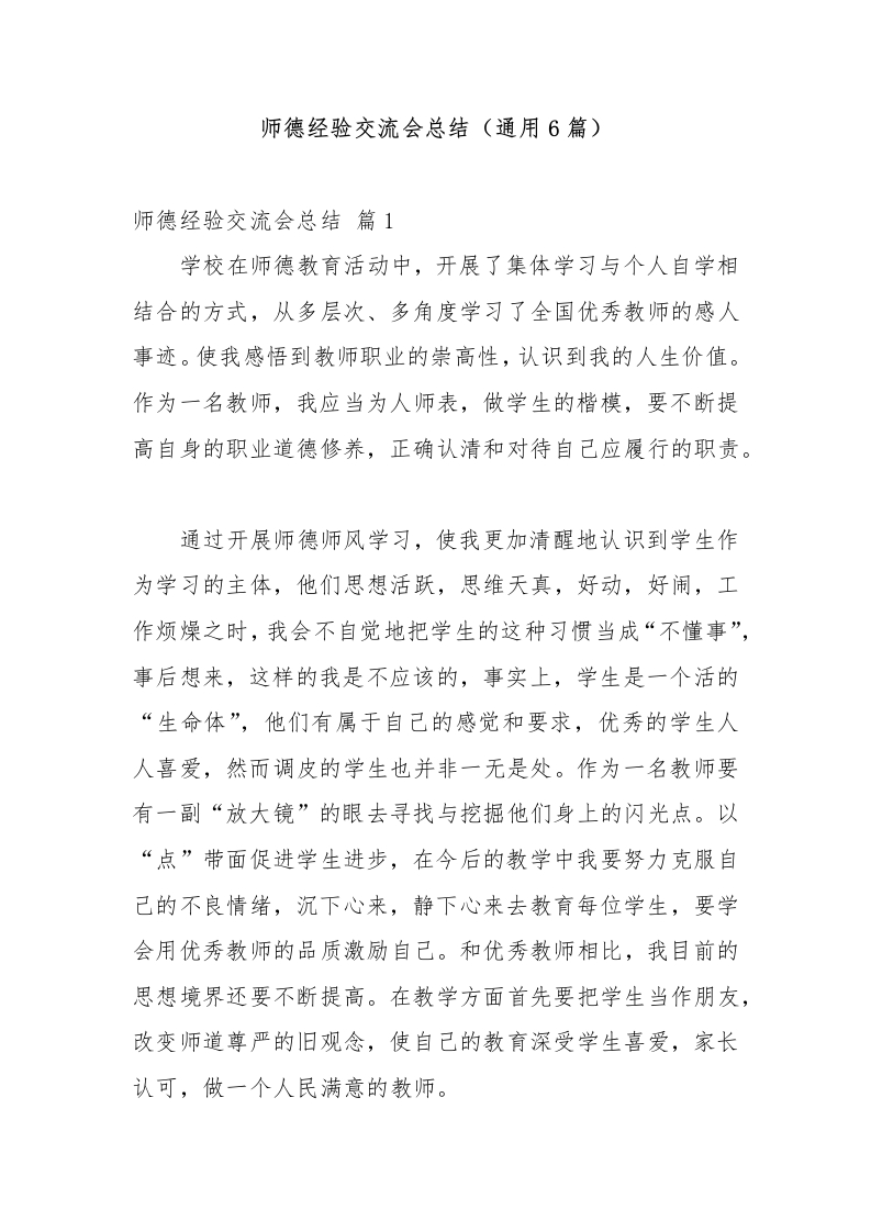 首页教师资料 经验汇报师德经验交流会总结(通用6篇)