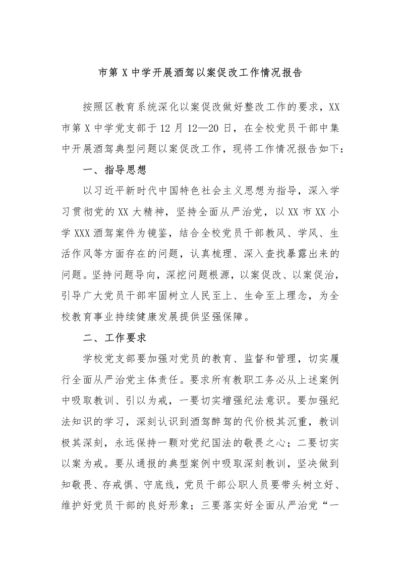首页教师资料 经验汇报市第X中学开展酒驾以案促改工作情况报告