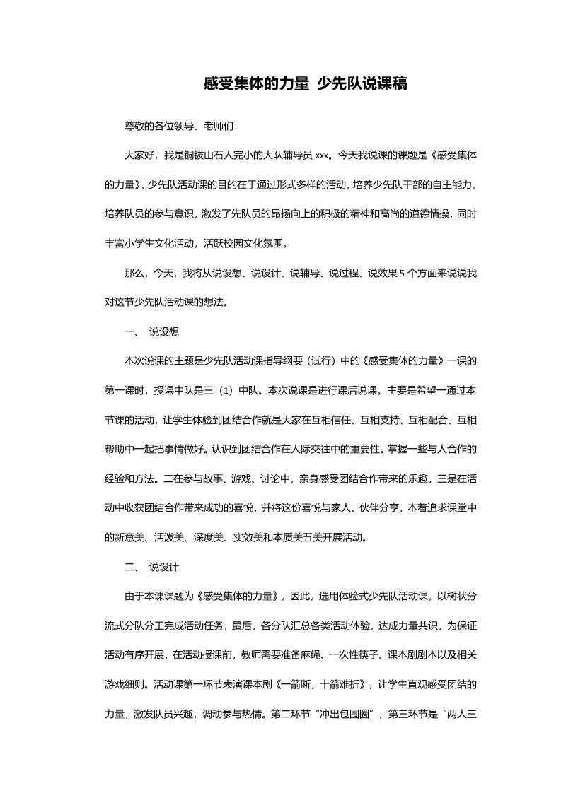 首页教师资料 经验汇报06感受集体的力量-说课稿