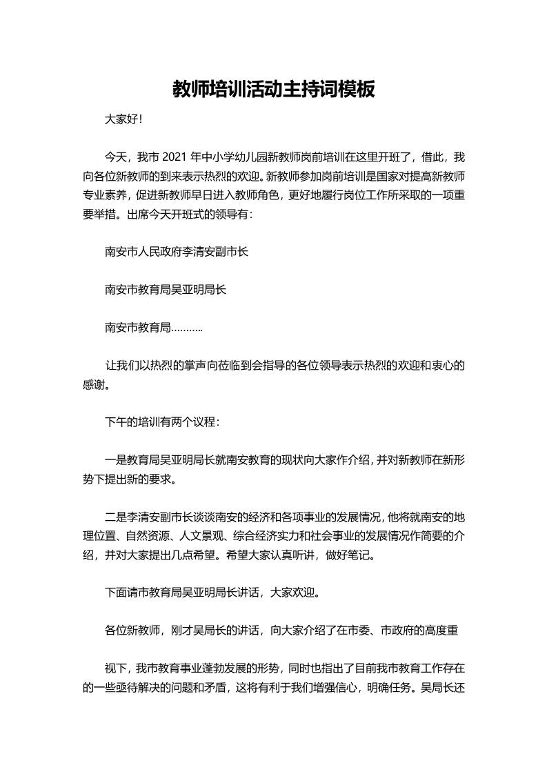 27-教师培训活动主持词模板