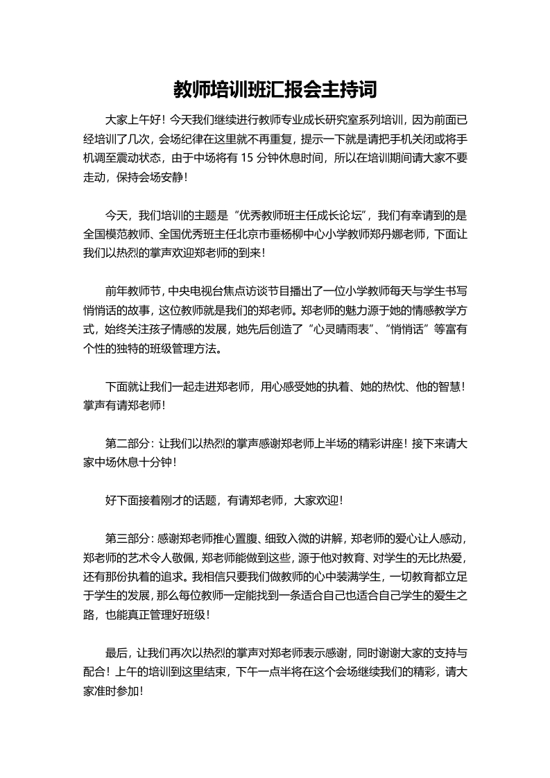 首页教师资料 经验汇报37-教师培训班汇报会主持词