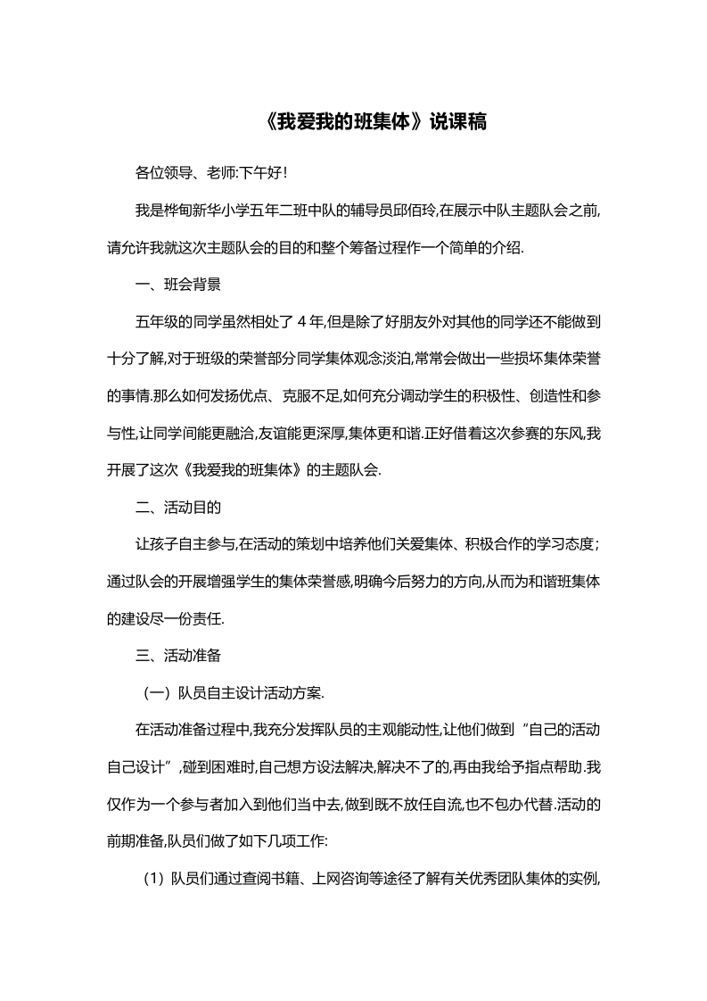 首页教师资料 经验汇报39我爱我的班集体 说课稿