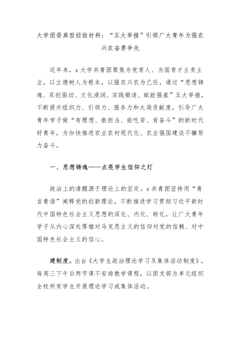 首页教师资料 经验汇报大学团委典型经验材料:“五大举措”引领广大青年为强农兴农奋勇争先
