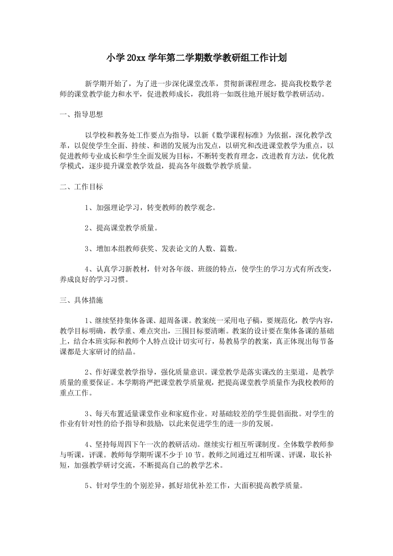 小学数学第二学期教研组工作计划21