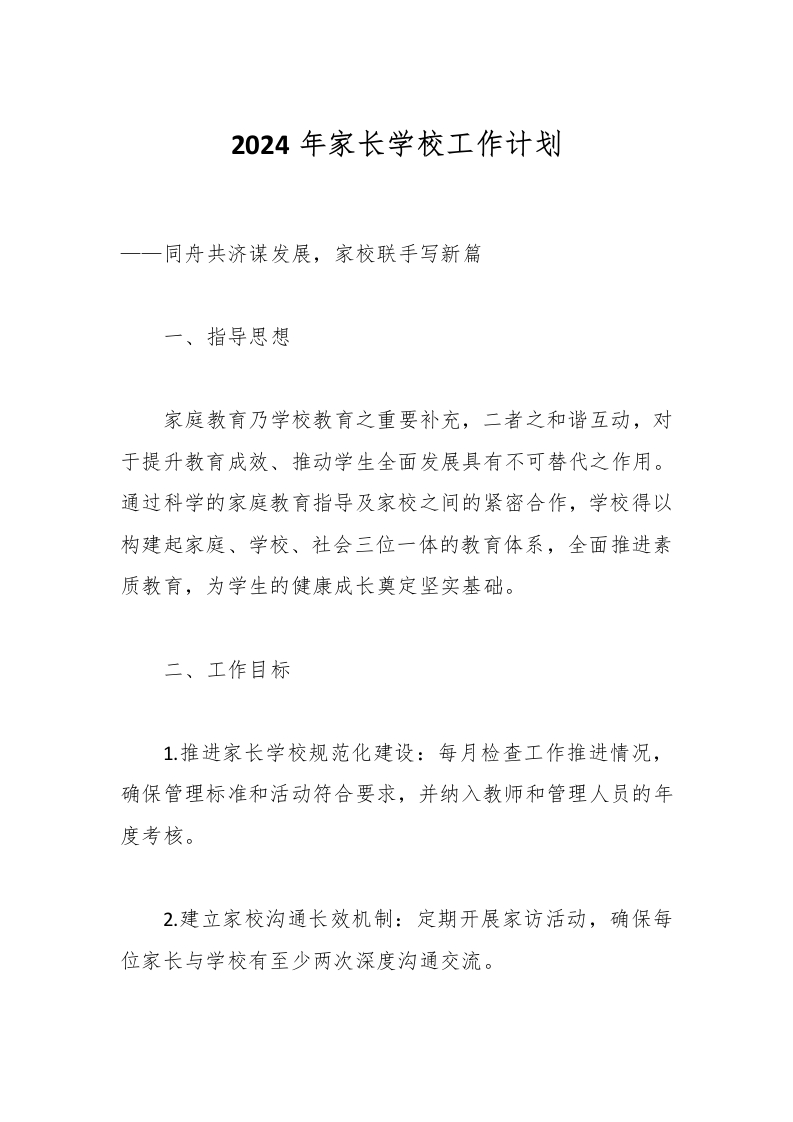 2024年家长学校工作计划