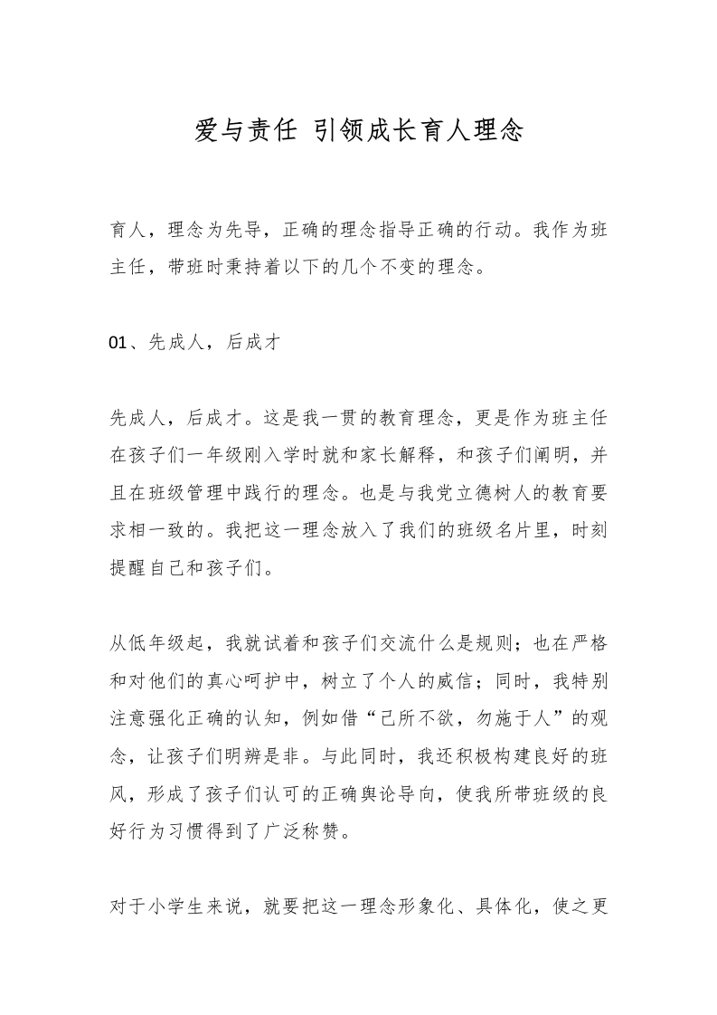 首页教师资料 计划总结爱与责任 引领成长育人理念