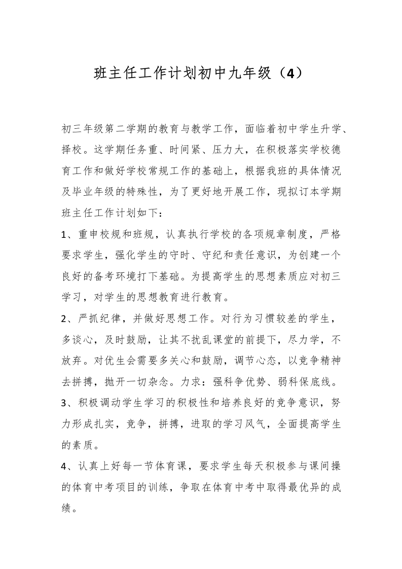 首页教师资料 计划总结班主任工作计划初中九年级(4)
