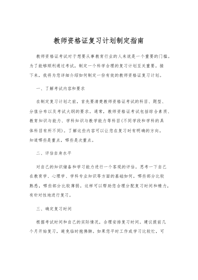 首页教师资料 计划总结教师资格证复习计划制定指南