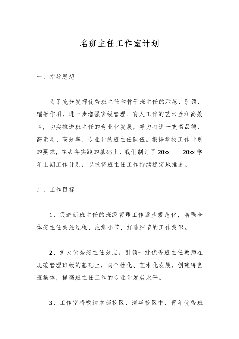 名班主任工作室计划