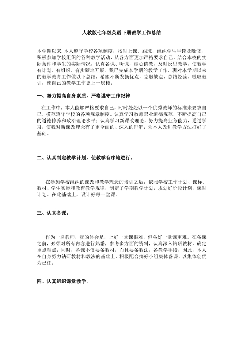 首页教师资料 计划总结人教版七年级英语下册教学工作总结