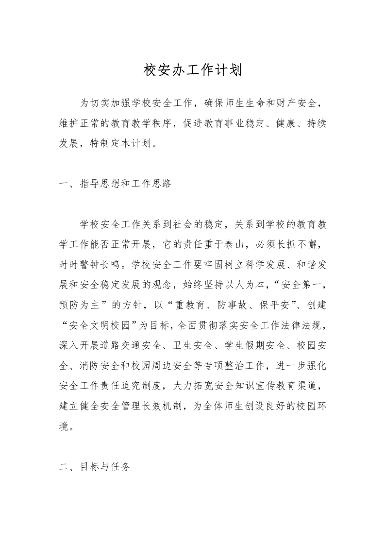 校安办工作计划