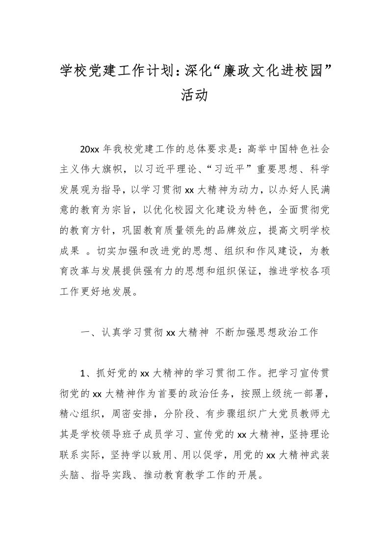 首页教师资料 计划总结学校党建工作计划:深化“廉政文化进校园”活动