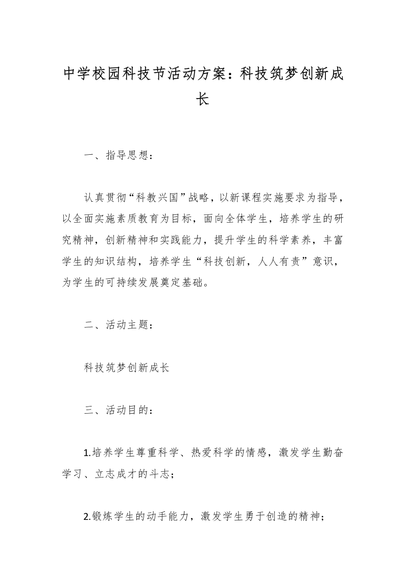 中学校园科技节活动方案:科技筑梦创新成长