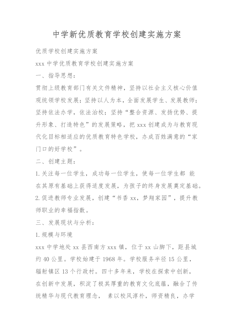 中学新优质教育学校创建实施方案
