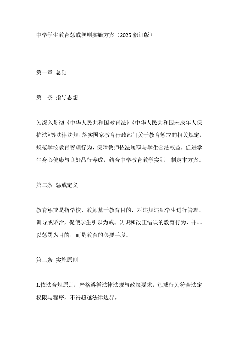 中学学生教育惩戒规则实施方案(2025 修订版)