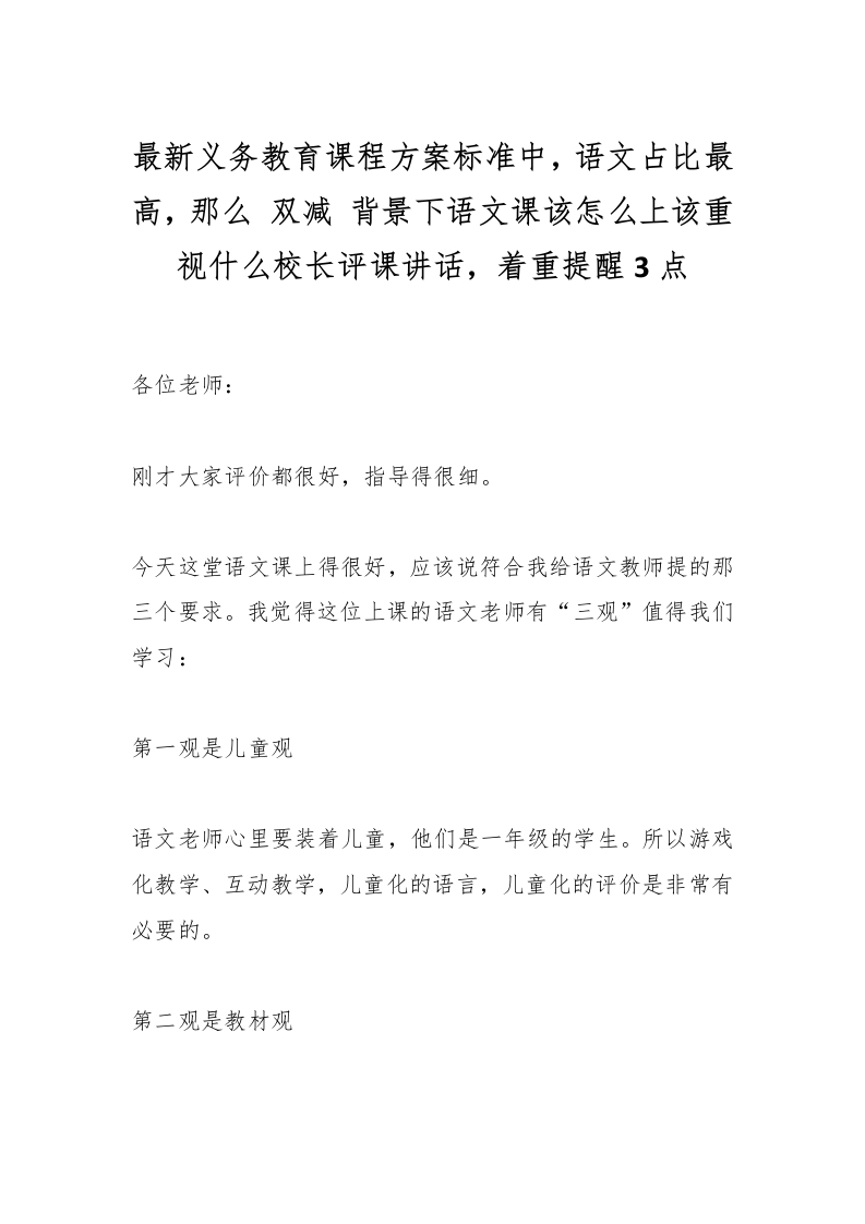 最新义务教育课程方案标准中,语文占比最高,那么 双减 背景下语文课该怎么上该重视什么校长评课讲话,着重提醒3点