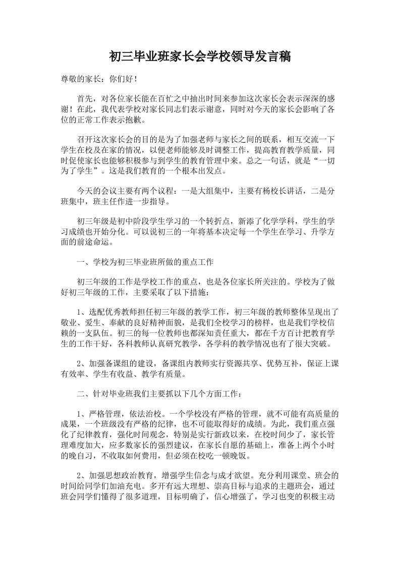 60.初三毕业班家长会学校领导发言稿