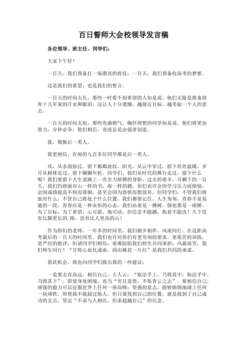 首页校长资料工作讲话188.百日誓师大会校领导发言稿
