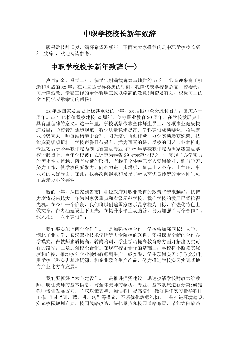 330.中职学校校长新年致辞