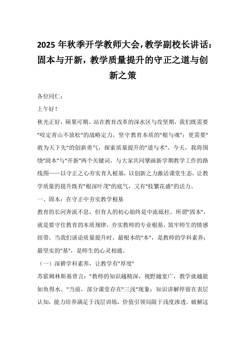 2025年秋季开学教师大会,教学副校长讲话:固本与开新,教学质量提升的守正之道与创新之策