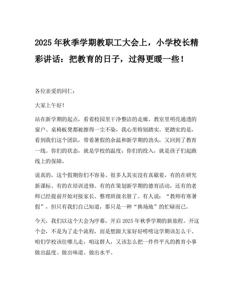 2025年秋季学期教职工大会上,小学校长精彩讲话:把教育的日子,过得更暖一些!