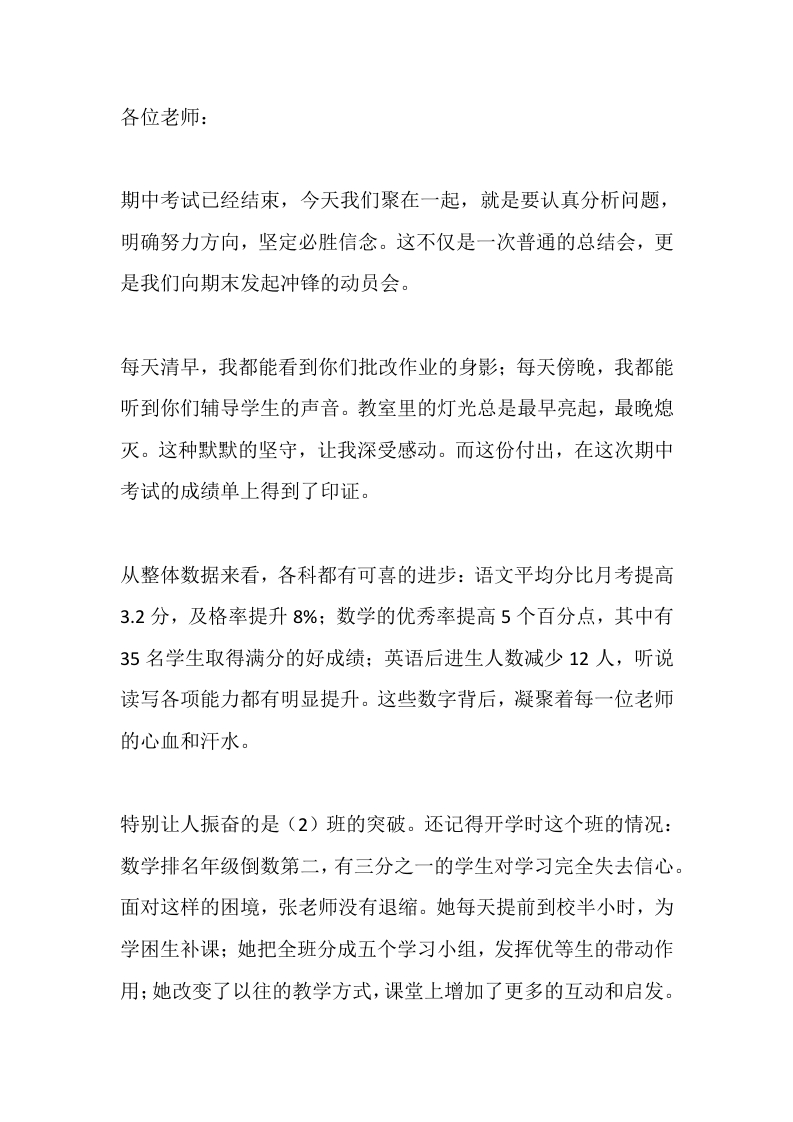 初一期中考试质量分析会校长讲话稿:教育就是战场,我们就是战士