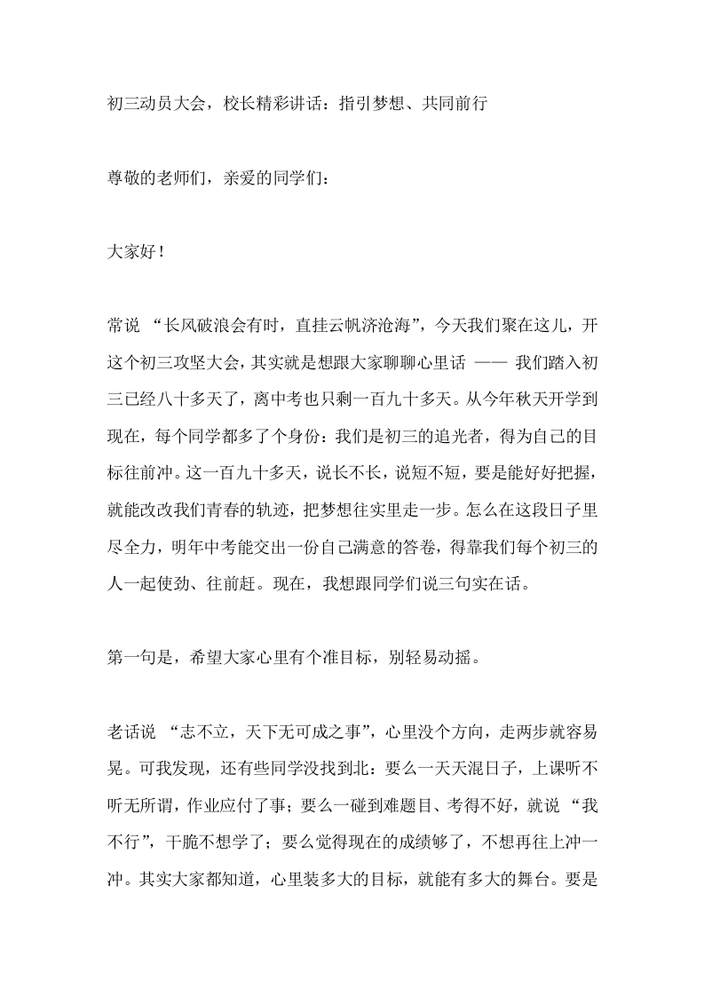 首页校长资料工作讲话初三动员大会,校长精彩讲话:指引梦想、共同前行