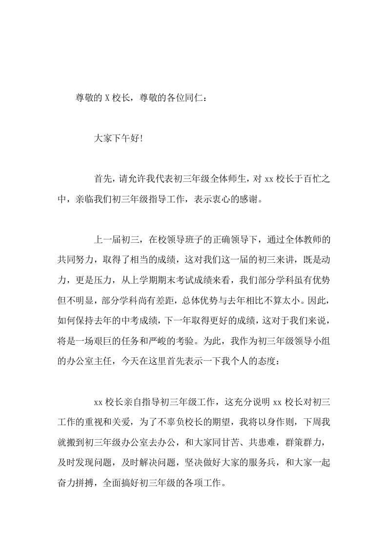 初三教师会议,副校长讲话我们将不遗余力的做好自己的本职工作,不辜负学校领导对我们的重托和希望