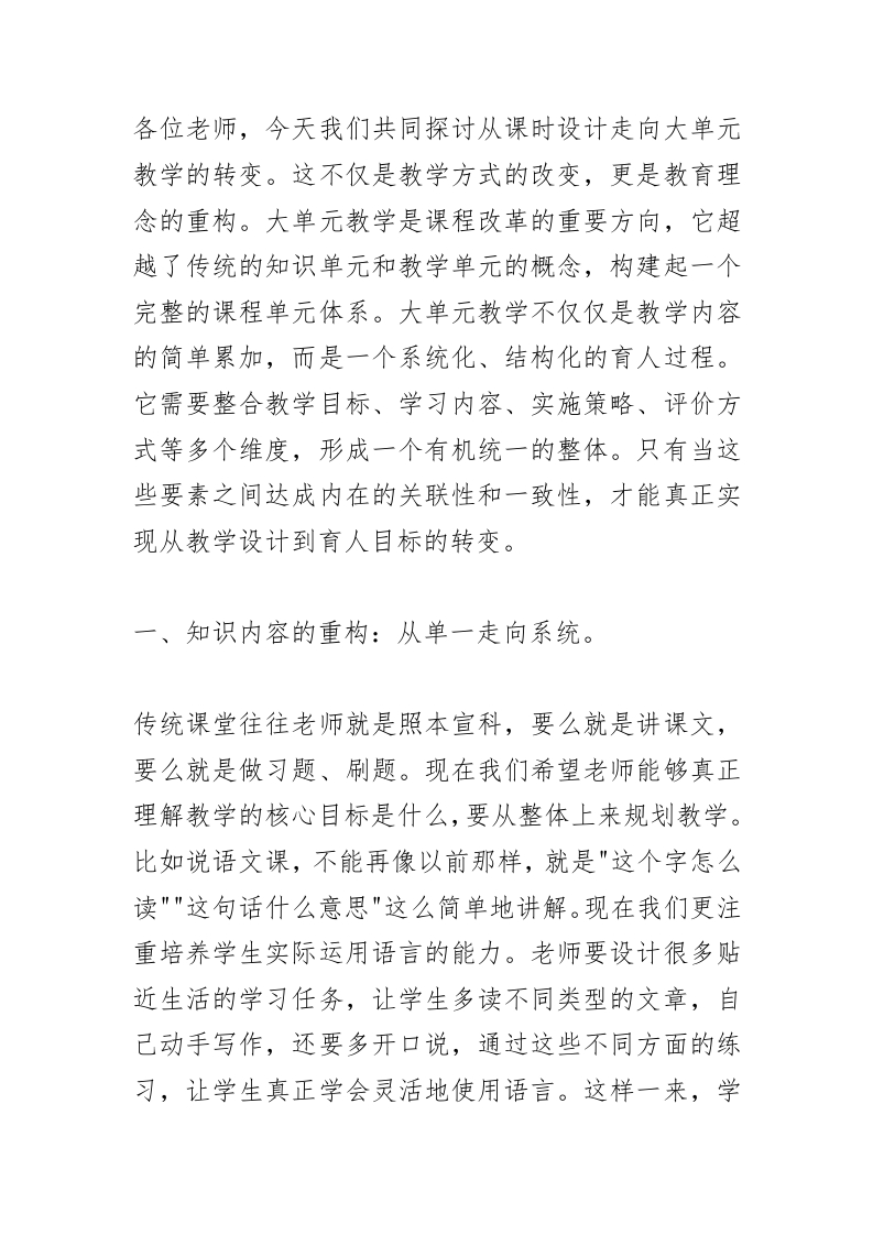 高质量课堂教学推进会,校长讲话:让大单元教学真正落地的“8个关键步骤”!