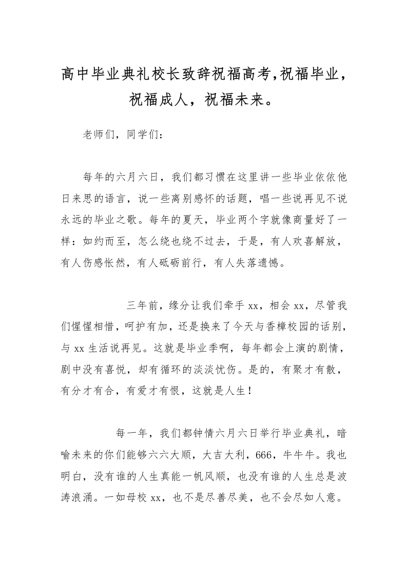 高中毕业典礼校长致辞祝福高考,祝福毕业,祝福成人,祝福未来。