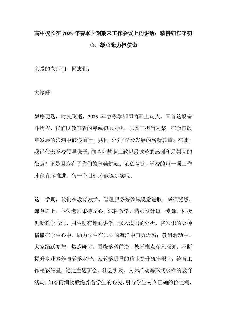 高中校长在2025年春季学期期末工作会议上的讲话:精耕细作守初心,凝心聚力担使命