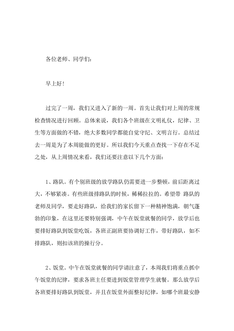 副校长值周小结,国旗下讲话总结过去一周是为了本周能做的更好