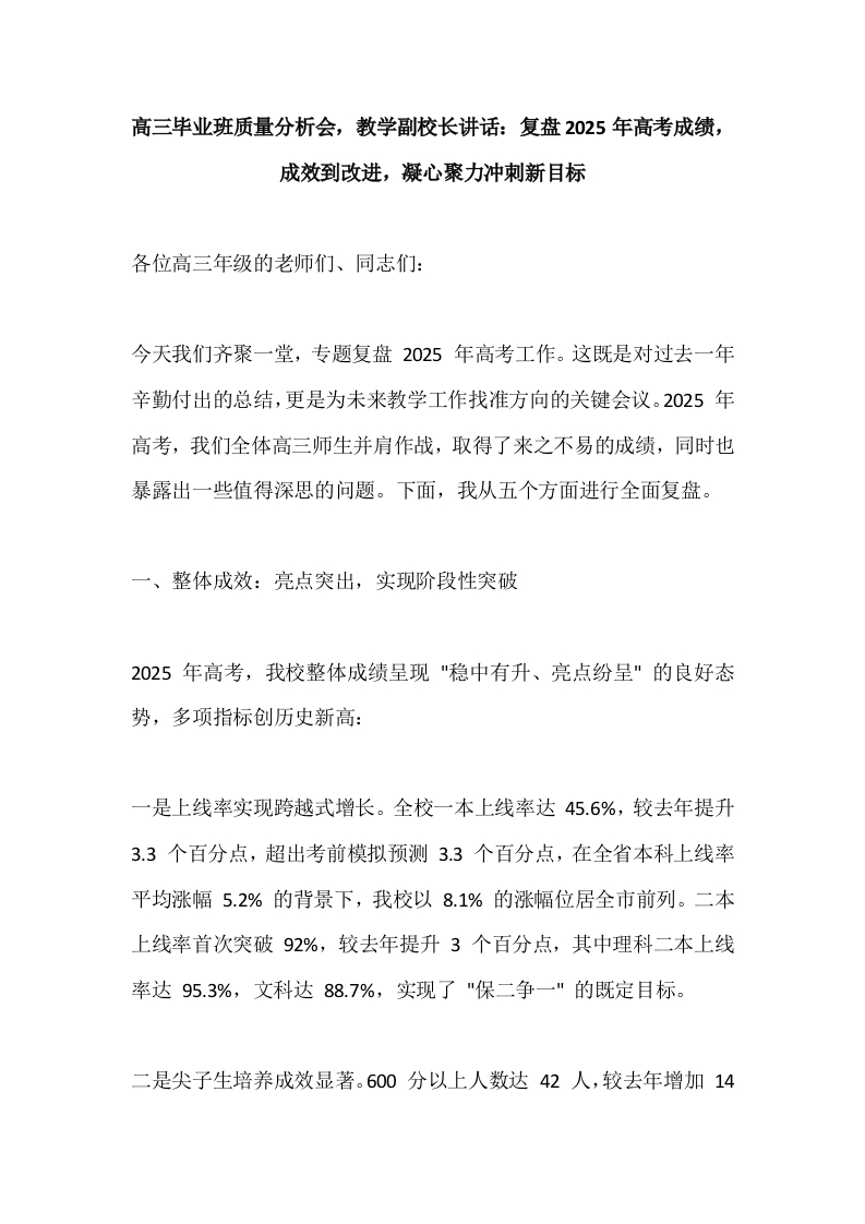 高三毕业班质量分析会,教学副校长讲话:复盘2025年高考成绩,成效到改进,凝心聚力冲刺新目标